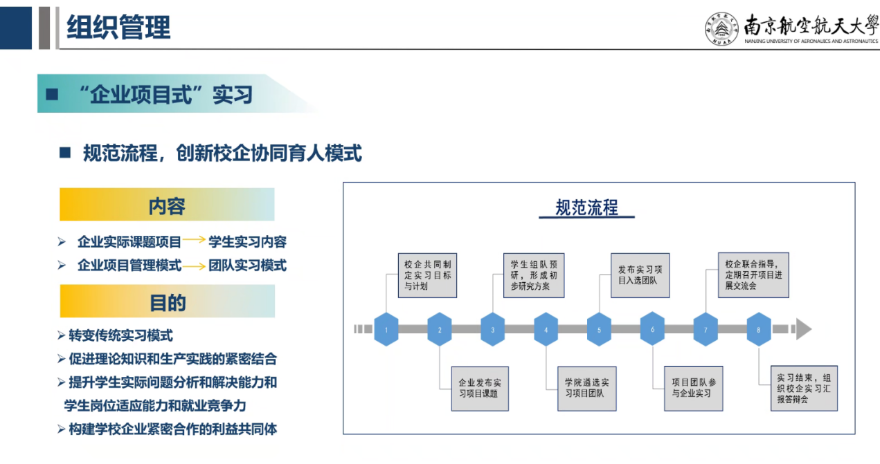 1.7-8月开展实习,各项目组前往企业完成工作,在实习中认真学习,遵守企业规章制度,展现南航学子风采;加强项目过程管理和节点考核,校内教师应定期赴企业进行指导,指导教师组织学生每周进行汇报讨论研究,以解决企业实际问题的成效作为实习效果评判标准;