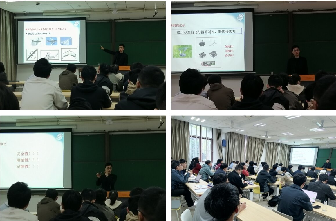 本次“飞行器设计创新实验课”以生动的案例教学和前瞻的视野引导,成功地为学生勾勒出从概念到实物的创新路径。课程以“微小型无人机设计案例” 作为切入点,迅速激发了学生的兴趣。重点分析了这些案例在气动布局、材料选择、飞控系统集成等方面的设计思路与权衡取舍,使学生对“飞行器设计”有了具象而深刻的理解。本堂课结构设计精妙,不仅传授了知识,更点燃了学生的实践热情,是一堂非常出色的实验导论课。