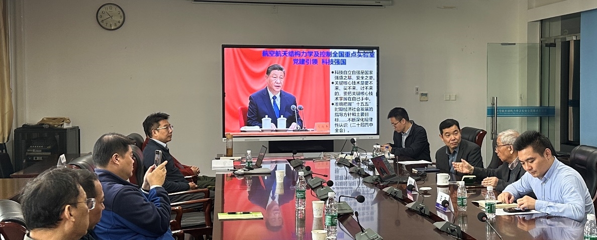 2025年11月3日上午,航空航天结构力学及控制全国重点实验室(力学全重)举办“党建引领,科技强国”专题会议,力学全重机关与赵淳生院士团队深入学习贯彻党的二十届四中全会精神,聚焦科技创新与学科发展。会议特邀中共二十大代表、校党委常委、宣传部部长徐川做专题辅导报告,宣讲党的二十届四中全会关于科技强国的精神。中国科学院院士赵淳生、航空学院院长魏小辉、力学全重常务副主任汪俊、科研院综合处副处长王云平、力学全重副主任王亮以及力学全重机关、赵淳生院士团队科研骨干等30余人参会。赵淳生院士亲自组织、策划并主持了此次“党建引领,科技强国”专题研讨会,旨在深入学习贯彻党的二十届四中全会精神,凝聚共识、汇聚力量,以高质量党建引领科技创新高质量发展,奋力谱写科技强国建设新篇章。航空学院院长魏小辉教授围绕科技强国与赵淳生院士团队的十五五发展规划做了重点发言,科研院综合处副处长王云平重点介绍了赵淳生院士团队牵头的蟠龙精密驱动实验室重组过程与实验室“十五五”的方向发展规划,力学全重常务副主任汪俊介绍了力学全重在动力学与控制方向的“十五五”发展规划与建议,赵淳生院士团队的骨干教师现场作了参会交流。