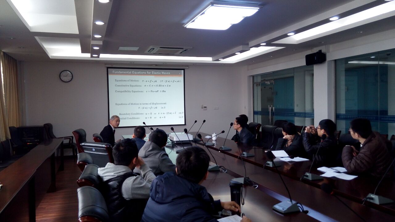 应我校航空宇航学院机械结构力学及控制国家重点实验室钱征华教授的邀请,日本东京工业大学Sohichi HIROSE教授于2017年3月28日至30日访问了我校,并于3月29日为我校师生做了题为“Elastic Wave Analysis and NDE”的学术报告。报告介绍了基于卷积的时域边界元方法,并详述了该方法的理论推导,及该方法在非线性超声波中的应用;同时,又介绍了弹性波在无损检测领域的应用,并详述了如何采用弹性波的近似解来探测缺陷,及超声导波的水下探测。报告结束后Sohichi HIROSE教授与在场的师生就相关领域的研究进行了交流和讨论。师生们认真聆听,特别是博士生们踊跃提问,受益匪浅。钱征华教授主持了报告会。