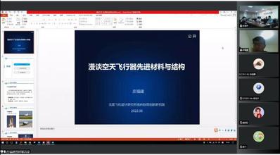 2022年8月20日,智能装备动力学中心团队研究生党支部与五好导学团队“大型空间结构动力学与控制创新团队”研究生联合开展了暑期党员/硕博专项社会实践活动。应智能装备动力学中心孙加亮老师的邀请,沈阳飞机设计研究所扬州协同创新研究院庄福建博士于2022年8月20日为智能装备动力学中心团队研究生党支部全体党员与五好导学团队“大型空间结构动力学与控制创新团队”研究生做了题为“漫谈空天飞行器中的先进材料与结构”的学术讲座。庄博士在讲座中首先介绍了空天飞行器的概念、分类、发展历史及其重要性,然后就其中运用的先进材料与结构进行了描述与分析,阐述了空天飞行器研制过程中的重难点,最后向各位研究生介绍了沈阳飞机设计研究所扬州协同创新研究院的基本情况。报告结束后,庄福建博士还和与会老师和学生就空天飞行器中的动力学问题、扬州院的就业相关问题等进行了充分的讨论,并且表示欢迎智能装备动力学中心的研究生加入扬州院。