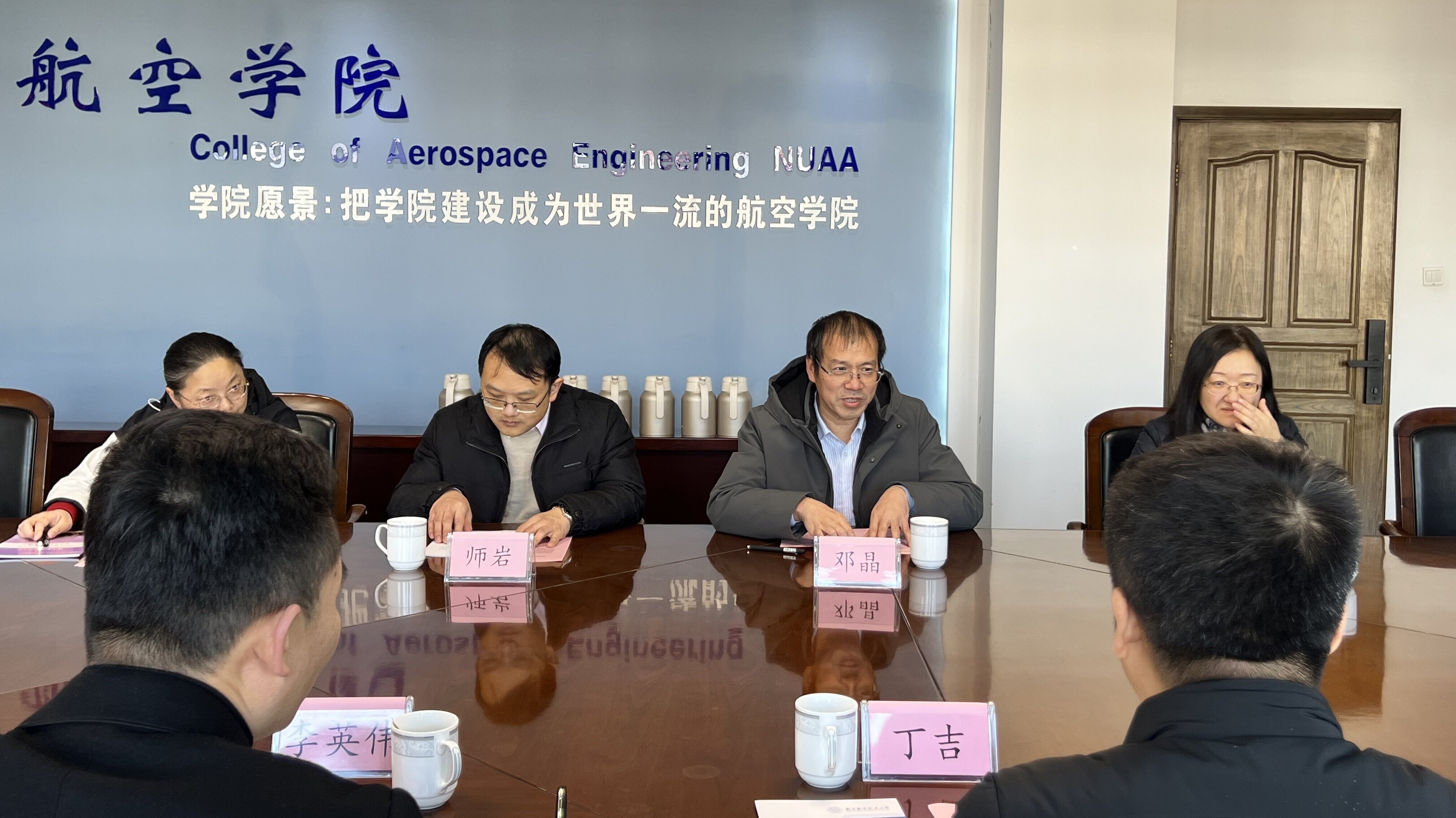 参观结束后,双方移步会议室正式进行交流座谈会。校教务部教务处副处长邓晶、航空学院副院长师岩、教师代表基础力学与测试系支部书记唐静静等参加了此次会议。座谈会由师岩主持。
