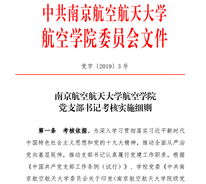 党字[2019]3号关于印发《航空学院党支部书记考核实施细则》的通知