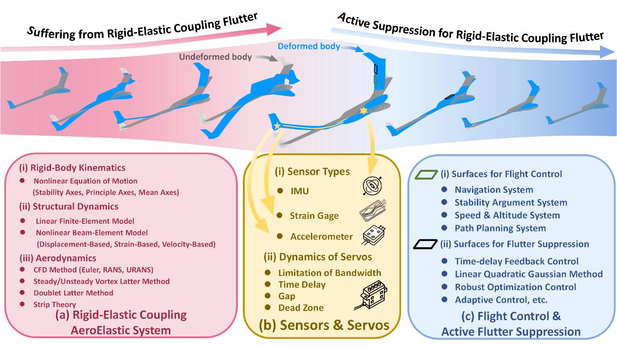 图1 刚-弹耦合颤振抑制技术的难点与挑战